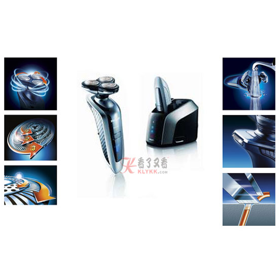 » 全智能面部轮廓贴合系统;带有三圈独立切剃装置的刀头;精确切剃装置;升级双层刀片设计;水洗设计;精确的管状修剪器;